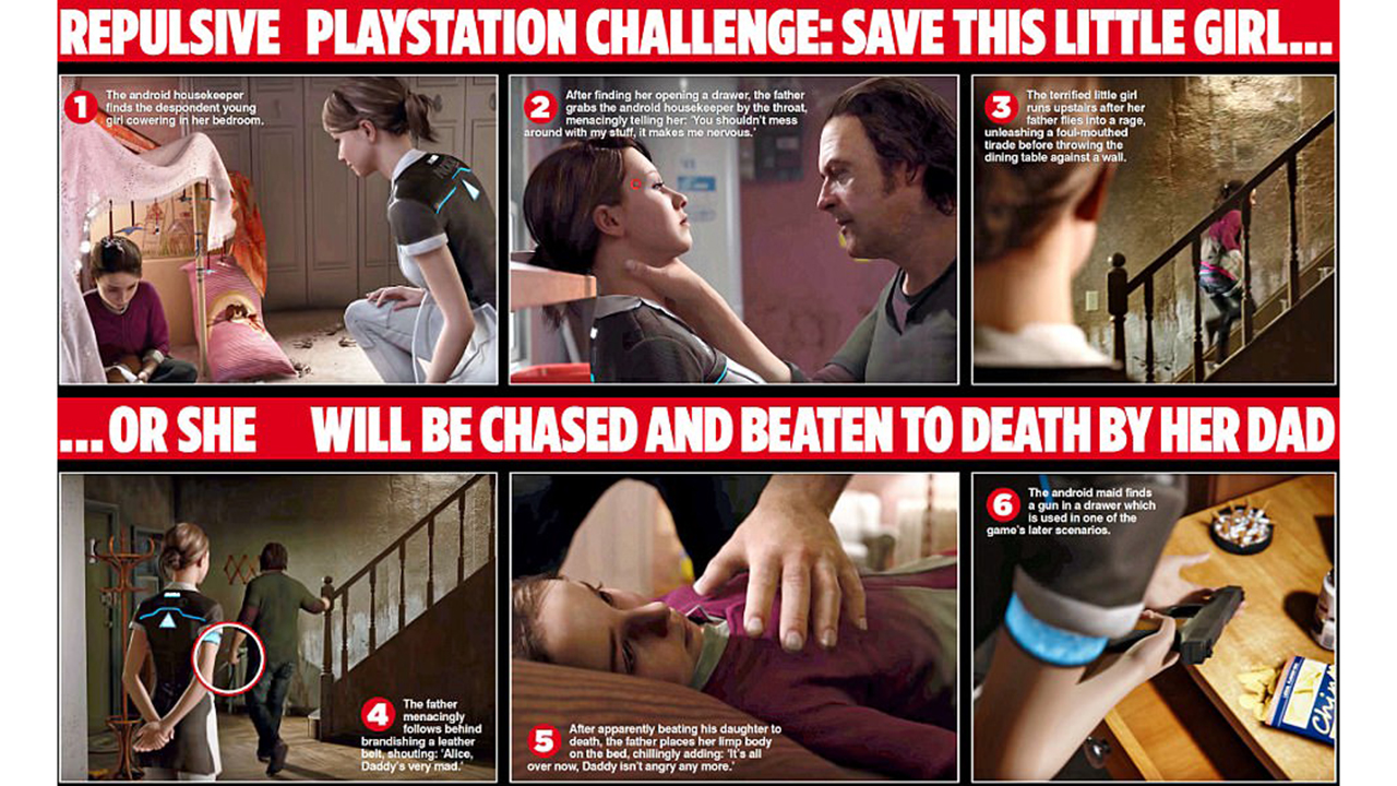 “A video game depicting child abuse and domestic violence was condemned as ‘repulsive’ last night by MPs and campaigners,” the article reads. “In one harrowing scene, a girl aged about ten is heard screaming as her father apparently beats her to death in her bedroom.”